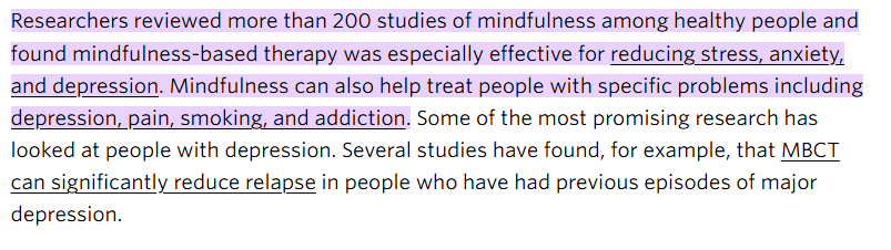 Bukti: Studi menunjukkan bahwa meditasi mindfulness meredakan beberapa gejala kecemasan dan depresi.