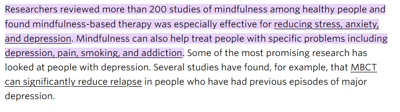 Evidence: Studies show that mindfulness meditation eases some symptoms of anxiety and depression.