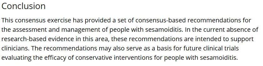 - Conservative Treatment of Sesamoiditis: A Systematic Literature Review with Individual-Level Pooled Data Analysis; https://pmc.ncbi.nlm.nih.gov/articles/PMC12300395/