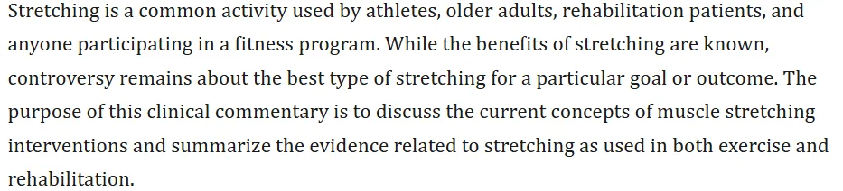 - CURRENT CONCEPTS IN MUSCLE STRETCHING FOR EXERCISE AND REHABILITATION; https://pmc.ncbi.nlm.nih.gov/articles/PMC3273886/